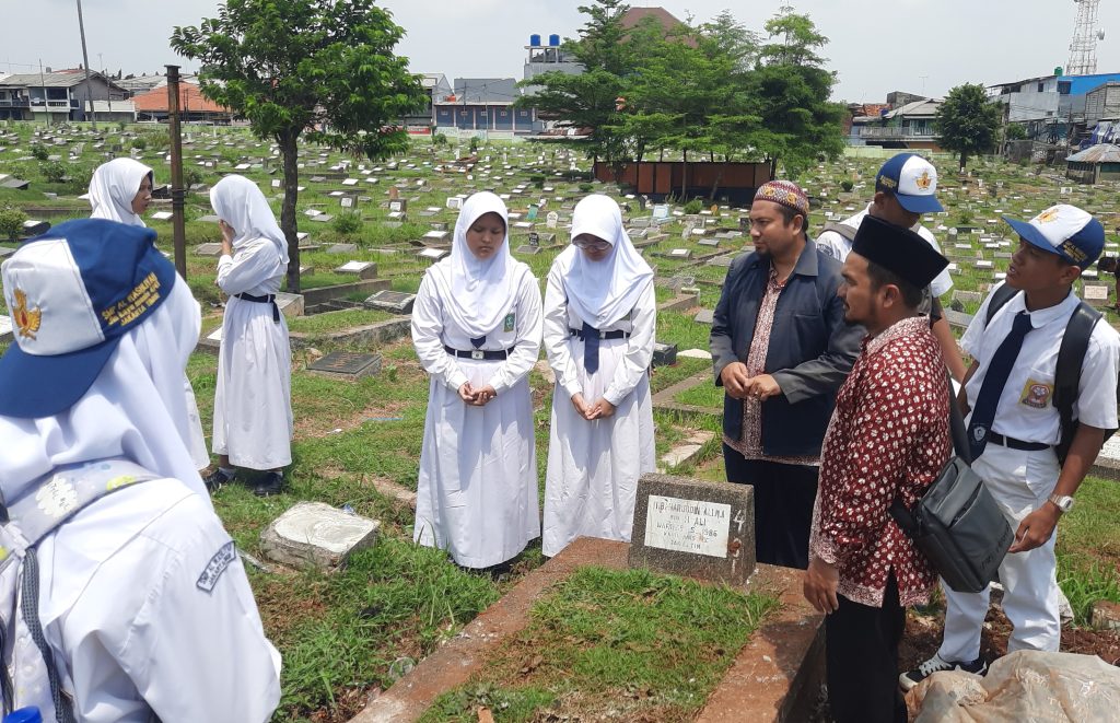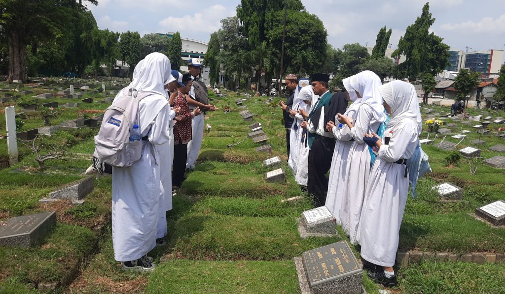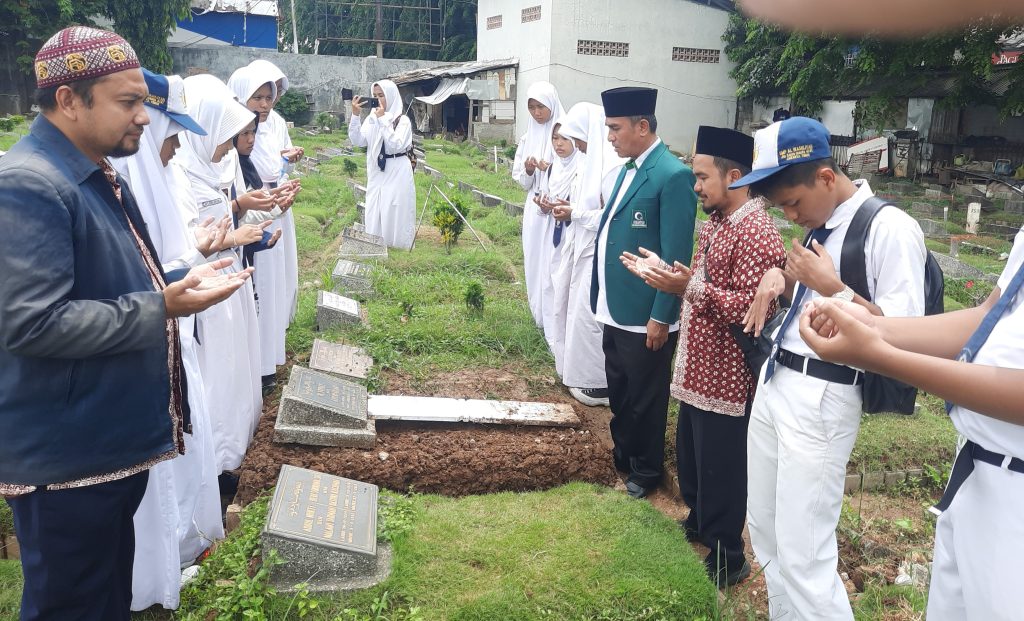 JAKARTA, RAWAMANGUN – Sejumlah guru dan siswa SMP Al Washliyah Kayu Manis, Jakarta Timur berziarah ke makam tokoh Al Washliyah yang berada di Jakarta. Ziarah tersebut dilakukan untuk mengenang jasa para tokoh Al Washliyah yang telah mendahului.