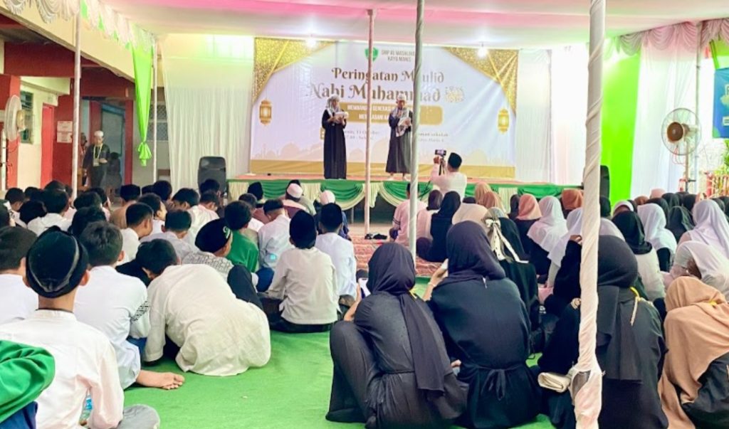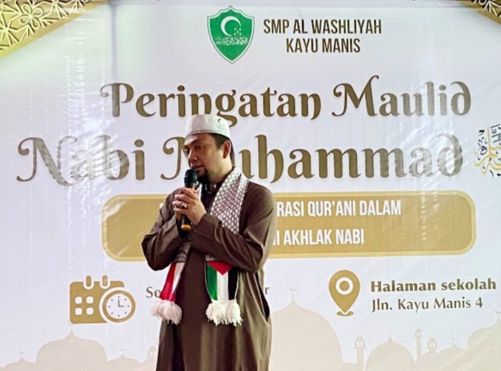 JAKARTA, KAYUMANIS – Maulid Nabi Muhammad Saw diperingati Sekolah Menengah Pertama (SMP) Al Washliyah Matraman, Kayu Manis pada Senin, 13 Oktober 2025 di halaman sekolah. Peringatan Maulid Nabi tersebut diisi dengan berbagai acara. Kepala SMP Al Washliyah M. Razvi Lubis, M.Pd mengatakan bahwa acara tersebut merupakan bentuk kecintaan kepada Baginda Rasulullah Saw.